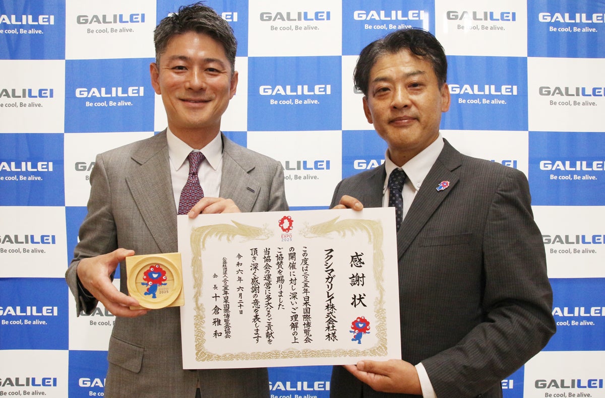 フクシマガリレイ株式会社(本社:大阪市西淀川区、代表取締役 社長執行役員 福島 豪)は、2024年6月20日に公益社団法人2025年日本国際博覧会協会より、感謝状を受領しました。この感謝状は、博覧会協会が大阪・関西万博に出展・協賛している企業・団体に幅広く感謝の意を伝えるために贈呈しているものです。