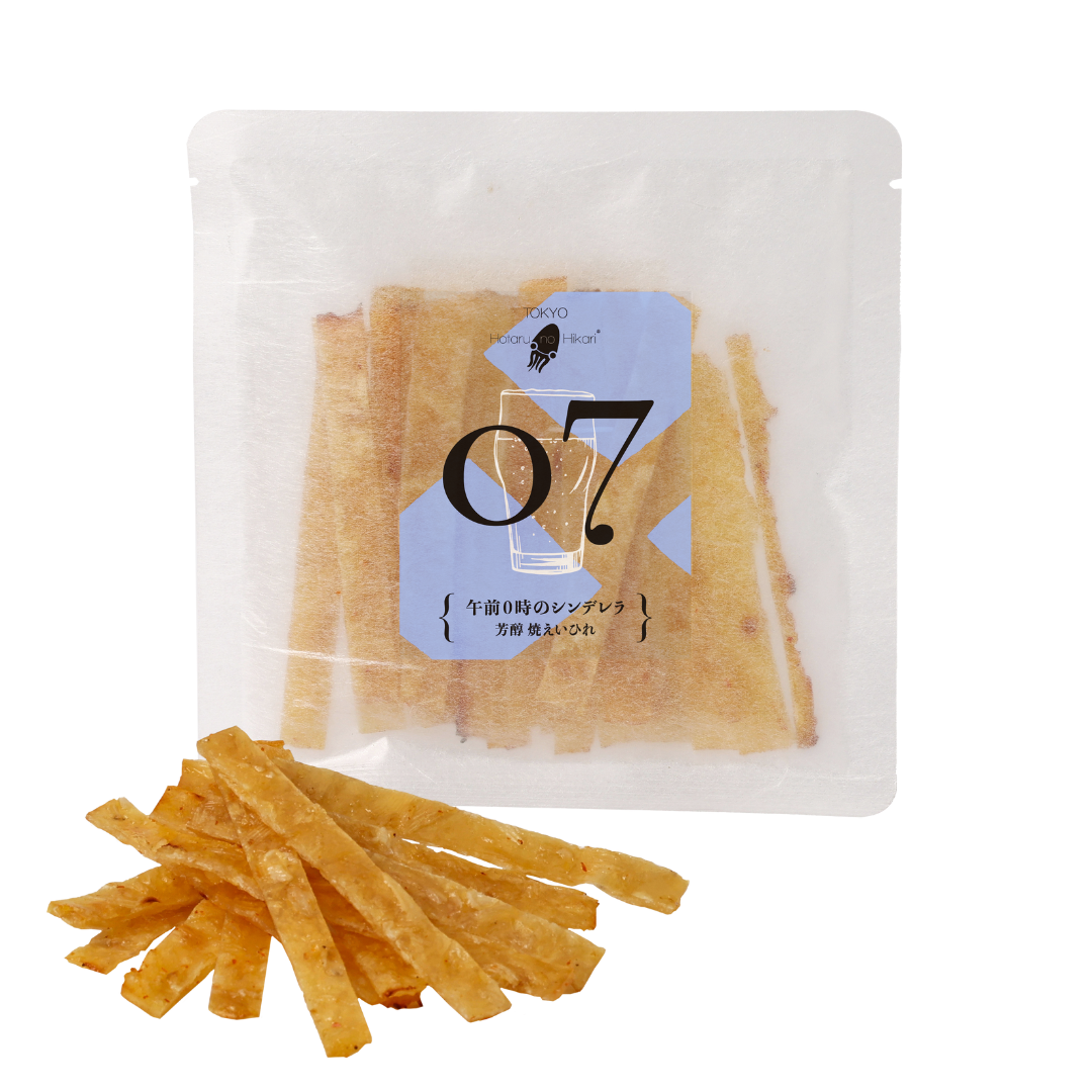 干したえいひれを焙焼し、こんがり色に香ばしく仕上げた芳醇な焼えいひれ。ふわり豊かな風味に加えて、ピリッと効く辛味がクセになりそう。