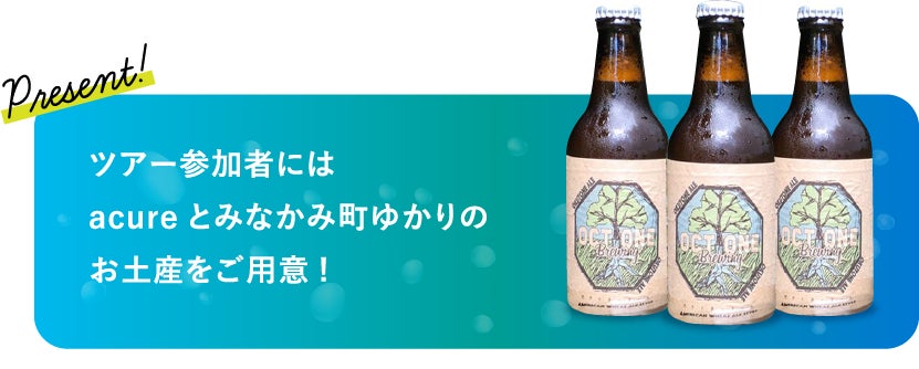 ツアーご参加者さまには、フロムアクアで仕込んだオリジナルクラフトビール等をお土産にプレゼントいたします。