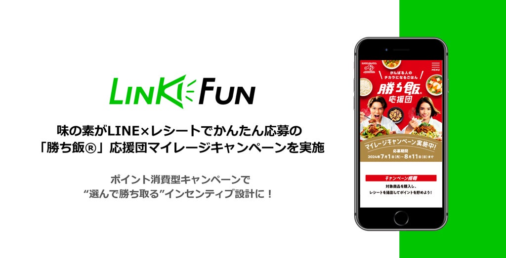 株式会社アイリッジ(本社:東京都港区、代表取締役社長:小田 健太郎、東京証券取引所グロース:3917、以下「アイリッジ」)とアイリッジの連結子会社でマーケティングに関するコミュニケーションデザイン事業を展開する株式会社Qoil(本社:東京都港区、代表取締役社長:山下 紘史、以下「Qoil」)は、両社が提供するLINEを活用した販促・顧客育成ツール「LINKFUN」が、味の素社が運営する「AJINOMOTO LINE公式アカウント」に採用され、2024年7月1日より「勝ち飯®」応援団 マイレージキャンペーンが実施されることを発表します。