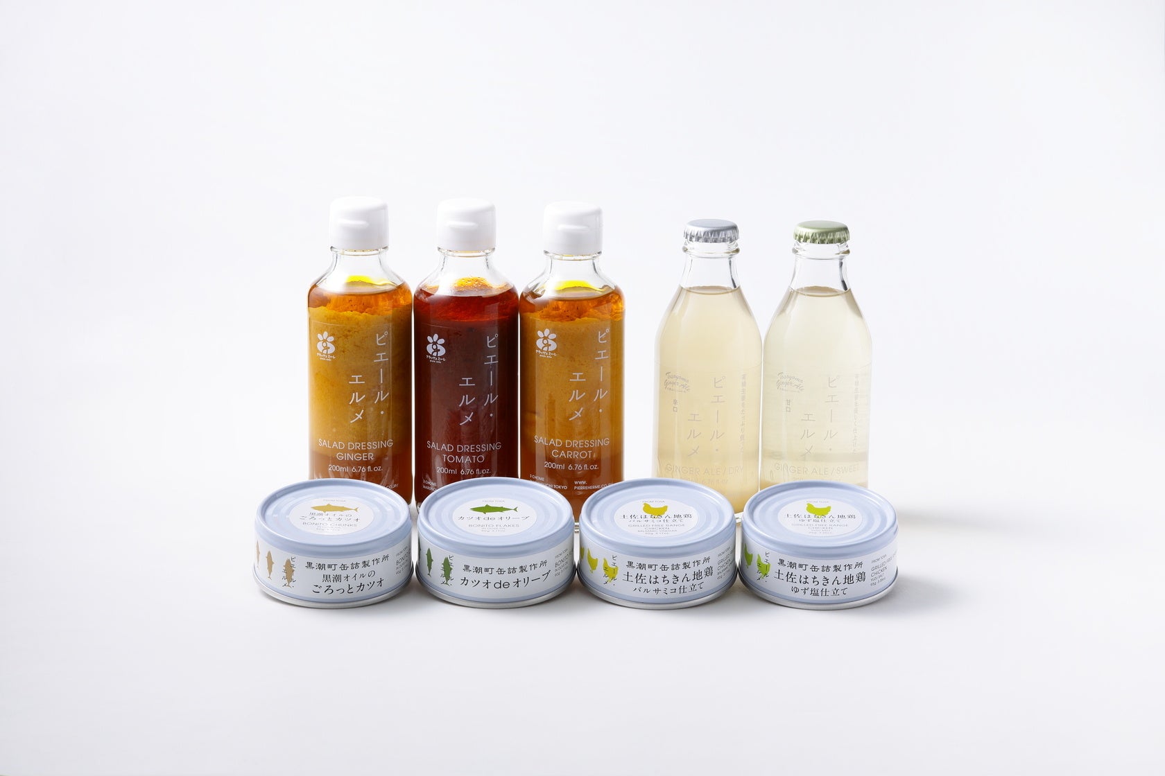 ジュース:果物のおいしさが詰まったジュースや有機生姜を使ったジンジャエールなどをご用意しました。ドレッシング:野菜とわずかなオイルで作った「野菜で野菜を食べる。」ドレッシング。野菜を一層おいしくお召し上がりいただけます。缶詰:7大アレルゲン不使用のこだわりの缶詰は手軽なおつまみとしてはもちろん、バゲットやサラダの付け合わせにも活躍します。