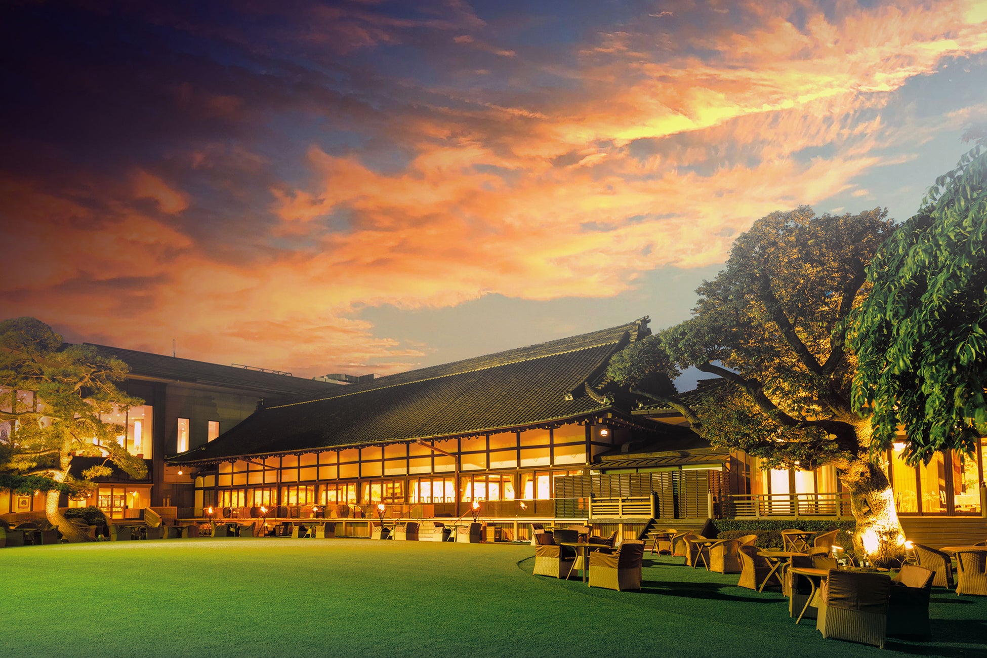 令和2年(2020)には、本館の歴史的・建築的価値が認められ、東京都指定有形⽂化財(建造物)に指定されました。現在は、平日は主にラウンジ『kinkei』としてご利用いただけます。庭園に面した開放的な「空間」と、明治時代の面影を残す格天井など歴史あるインテリアが、和魂洋才の上質な「時間」を提供します。また、明治記念館オリジナルのケーキや和洋菓子、サイフォン式で抽出するコーヒーもお愉しみいただけるなど、都会の喧騒を離れ、落ち着いた空間・時間を満喫できる「場」を提供しています。