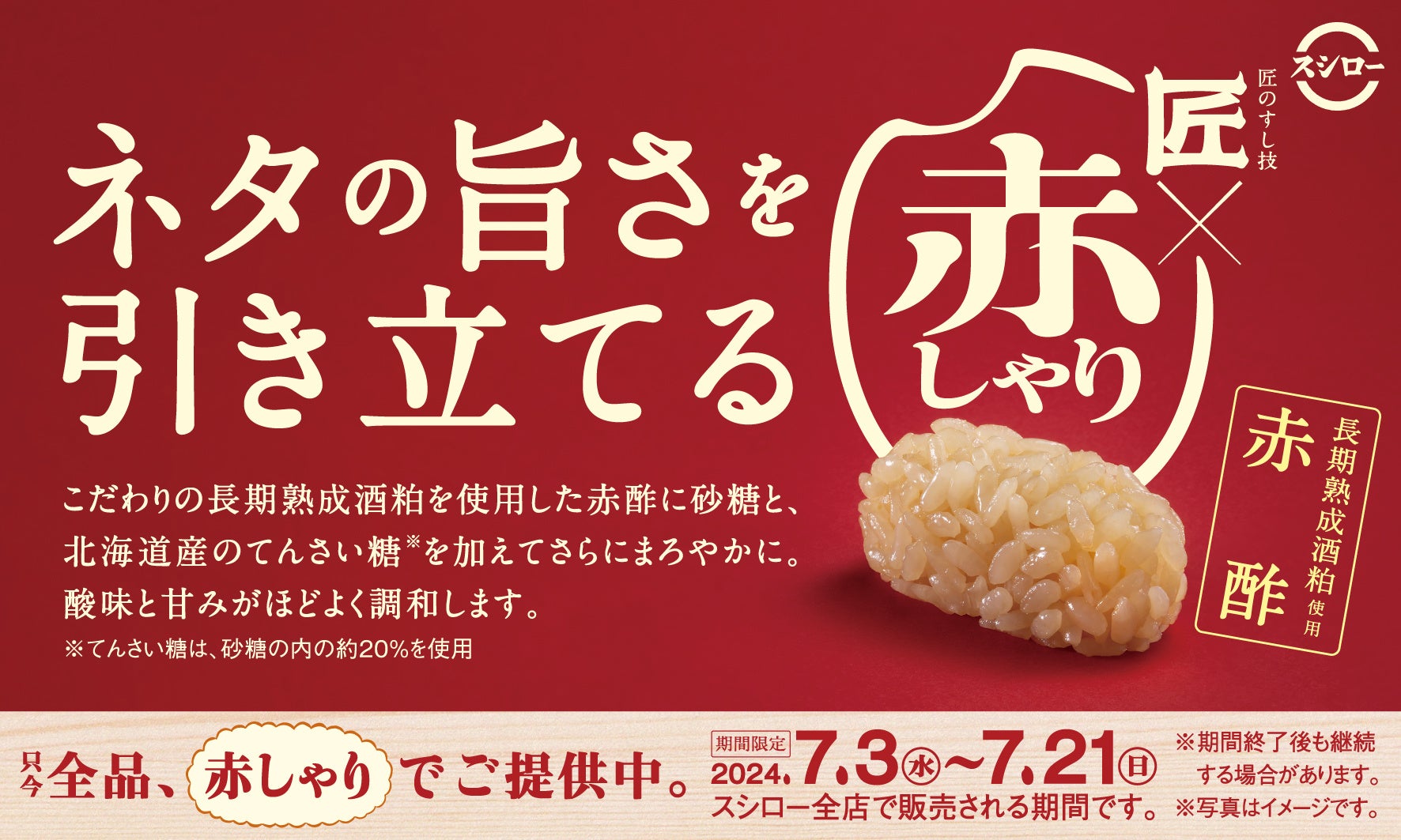 <7月3日(水)より全国のスシローにて期間限定販売>さらに期間中は、ネタの旨みを引き出す“赤しゃり”でご提供!