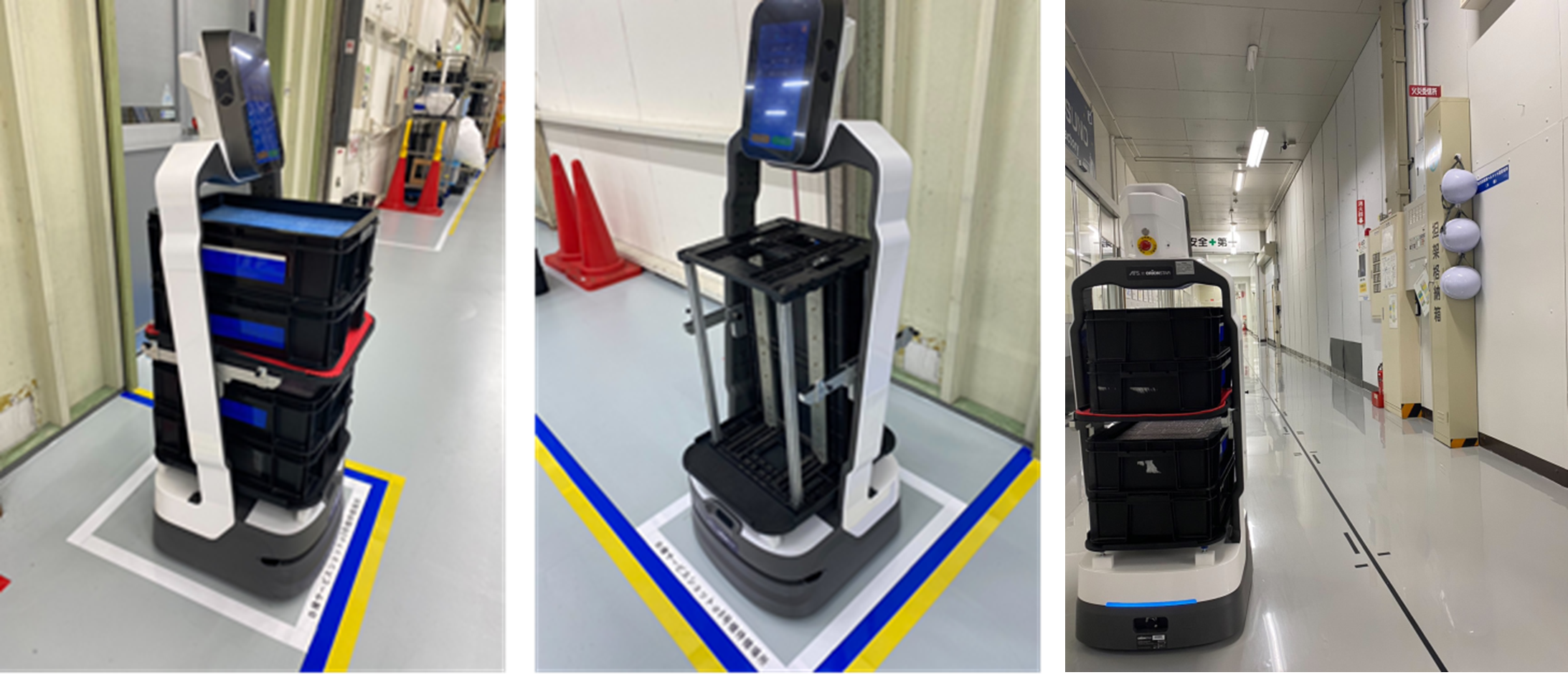 また、これまでのAGV(無人搬送車)と違いα8号は、自律走行の目印となるマーカーを設置も不要であったことや走行性能が良く、AGVが通れない細い通路も通ることができることに高い評価をいただいております。