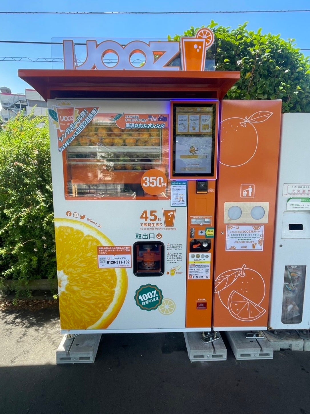 「こどもの国駅」に設置された生搾りオレンジジュース自販機IJOOZ