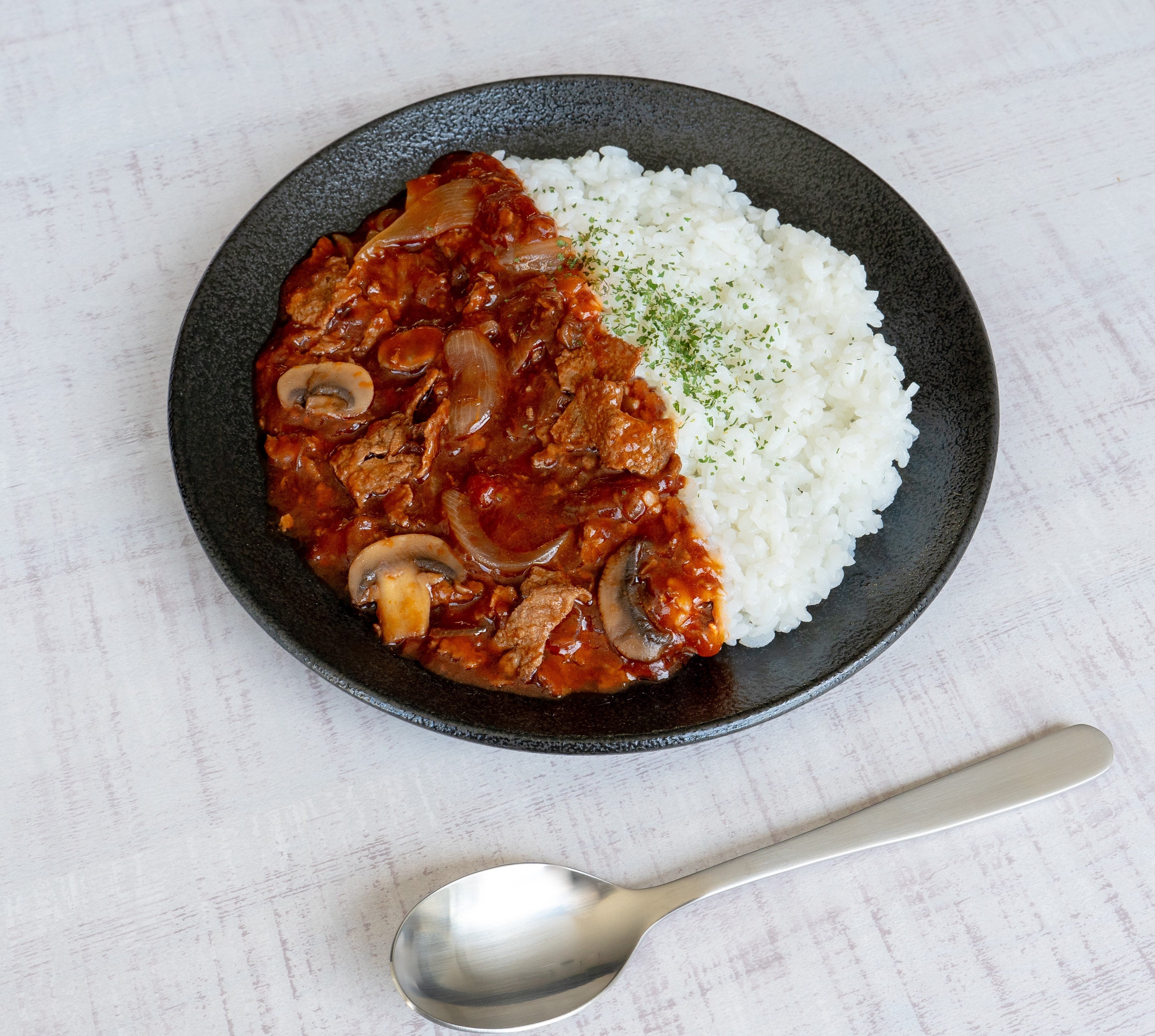 甘辛いタレに漬けこんだ薄切り肉タイプのプラントベースミートです。タレ漬けなので、野菜を加えるだけですき焼きや回鍋⾁など、さまざまな料理に簡単に応用できます。また、トマト缶を加えてハヤシライスにするなど一工夫でアレンジを広げられる食材です。