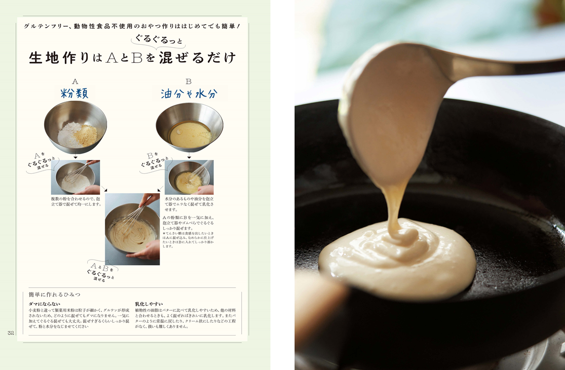 グルテンフリーに興味があるけど手間がかかりそう…と思っていませんか? グルテンフリーは動物性食品を使わないから、ダマにならず乳化しやすいのが特徴です。基本の生地は、粉類と油分や水分をそれぞれぐるぐるっと混ぜて、最後に一緒に混ぜ、あとは焼くだけ。通常のお菓子より、コツいらずで完成します。本書は、はじめての方でも始めやすい、フライパンでできるレシピもご紹介。おやつを作るひとときも、楽しんでもらいたい、そんな著者の想いも込められたレシピ本です。気負わず、ぜひチャレンジしてみてください。