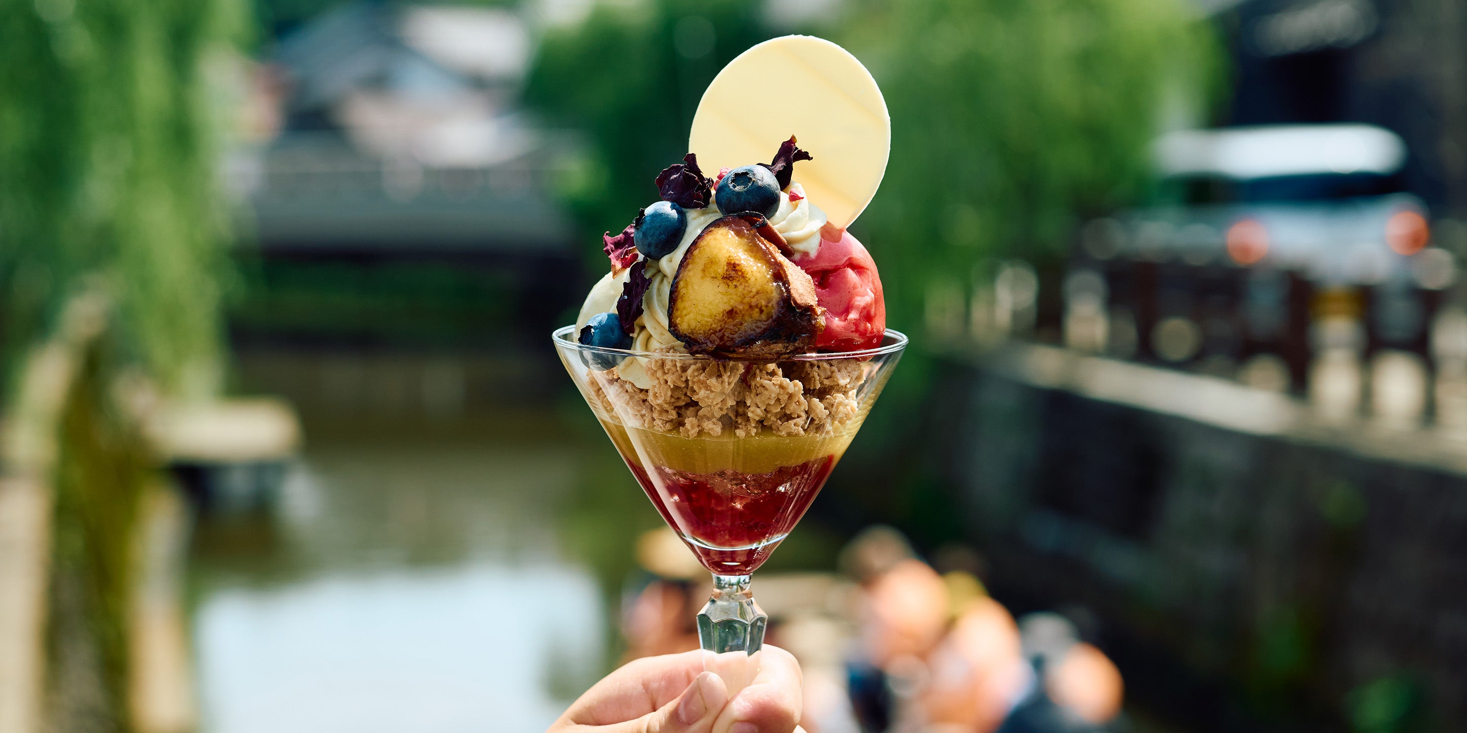 本店舗で提供するパフェは、予約の絶えないパフェ専⾨店を経営する宮副⽒を監修パティシエに迎え、規格外の芋を使⽤したKin Mitsu Imo Sweets Collectionとして廃棄されてしまうさつまいもを高級スイーツに変化させ、さつまいもの価値を上げる取り組みです。また、金蜜堂がある地域では7月12〜14日に、ユネスコ無形文化遺産に登録されている”佐原の大祭”も予定されているため、初夏を感じるおでかけにもおすすめです。