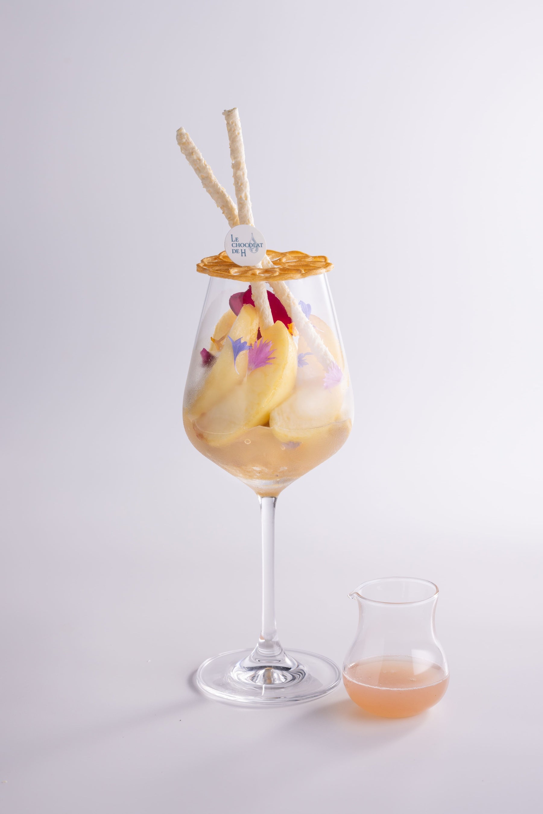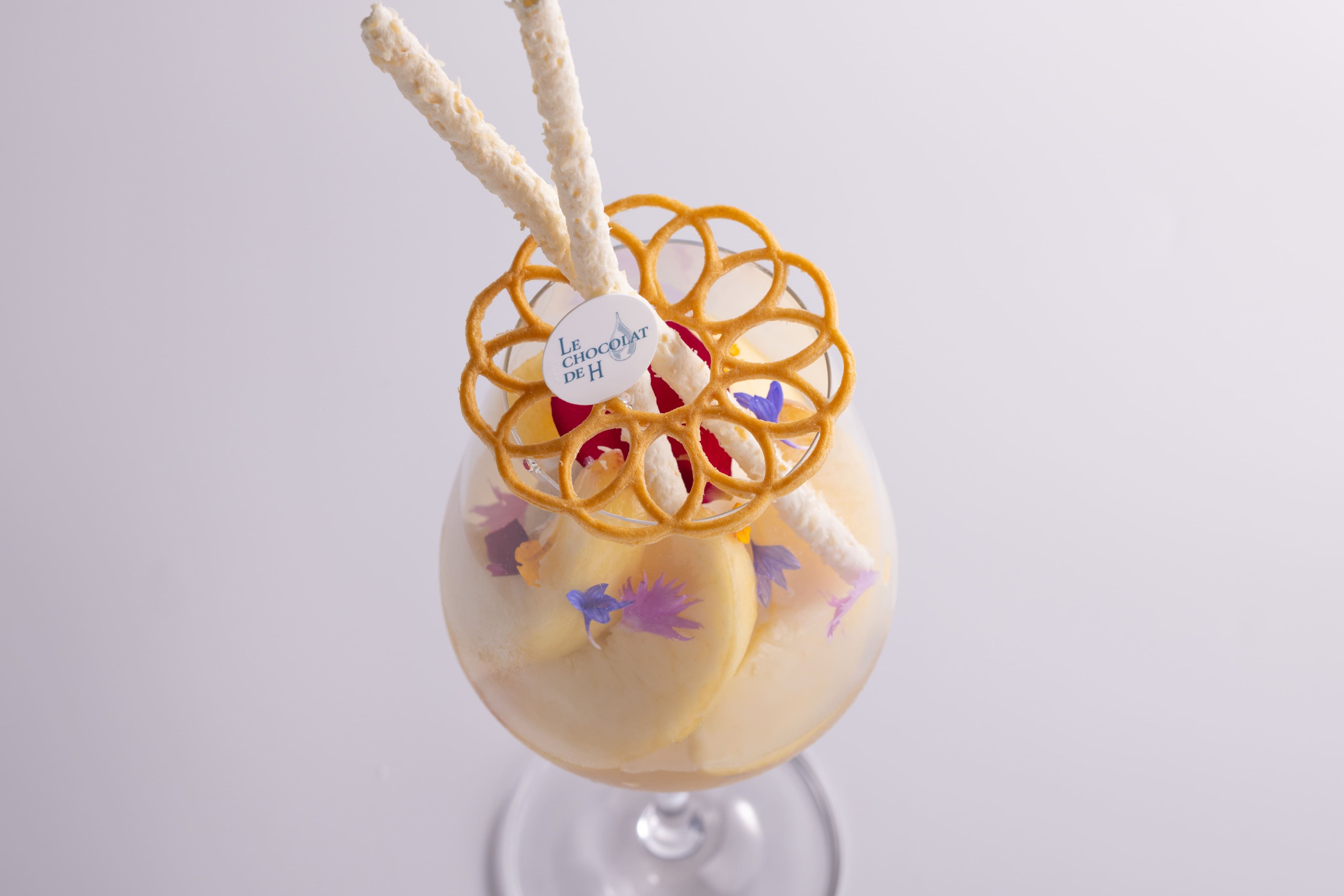 LE CHOCOLAT DE Hではサヴァランを主役にした桃のパフェを展開。