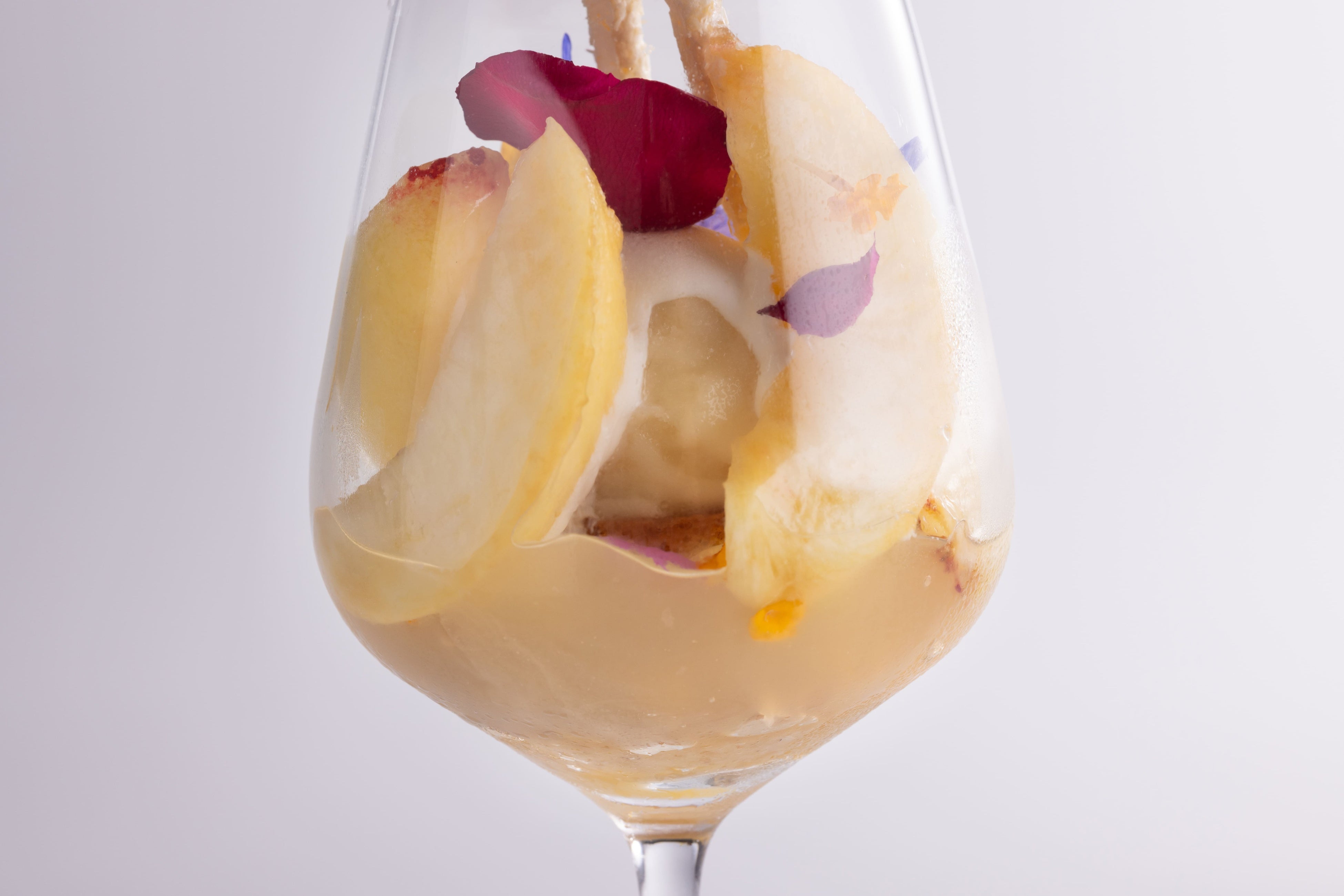 桃とサヴァランのパフェ 〜ローズ&ライチのソースを添えて〜