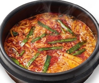 魚介の旨味がつまったチゲスープに、太麺でコシが強くもっちりとした韓国の「サリ麺」を合わせました。麺から小麦と油が溶け出すことで、多少の甘さとまろやかさを感じられます。
