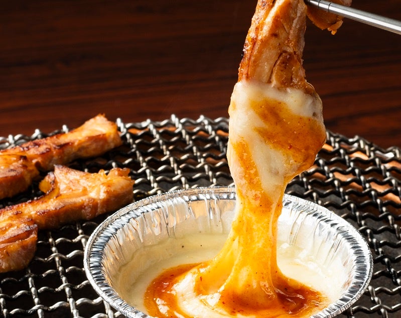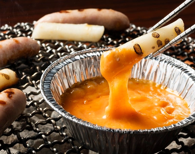 ソーセージとトッポギに甘辛いたれをかけた韓国の屋台料理「ソトック」。牛角流のソトックは七輪で焼き上げるので香ばしさを感じられます。チーズとの相性も抜群です。