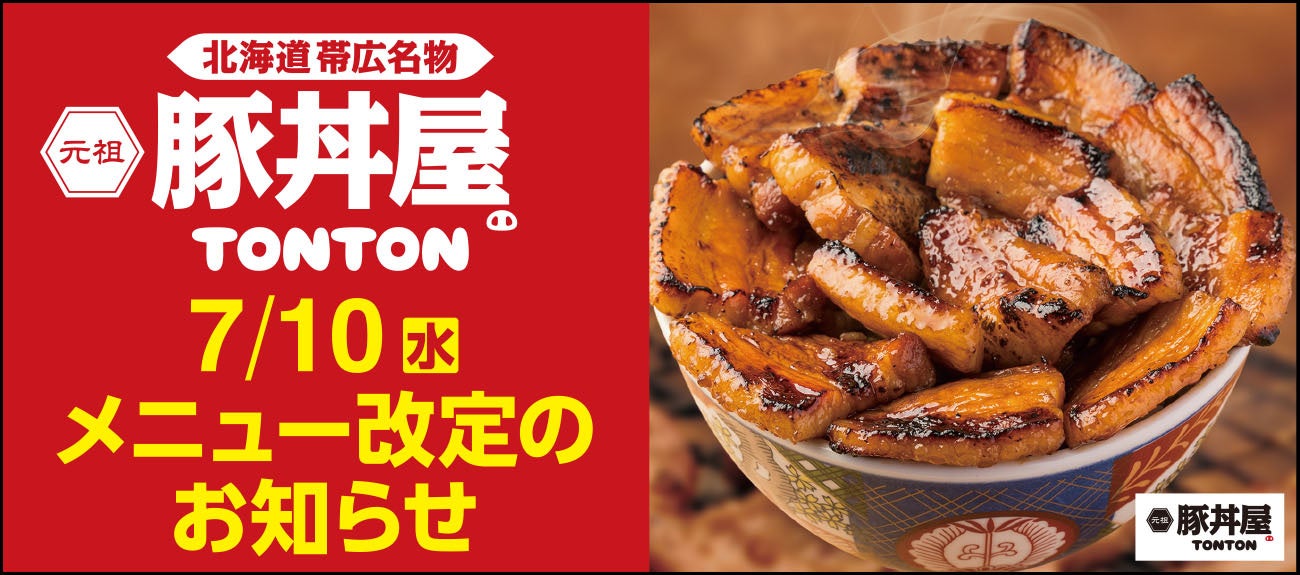 ワンズトライン株式会社(本社:大阪市北区芝田2丁目3番16号、代表取締役:山内仁)が運営する、「元祖豚丼屋TONTON」が、7月10日(水)グランドメニュー改定を実施いたします。