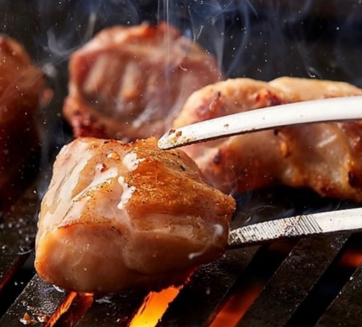 卓上の無煙ロースターで焼きたてを楽しむ「鶏焼肉」 490円〜