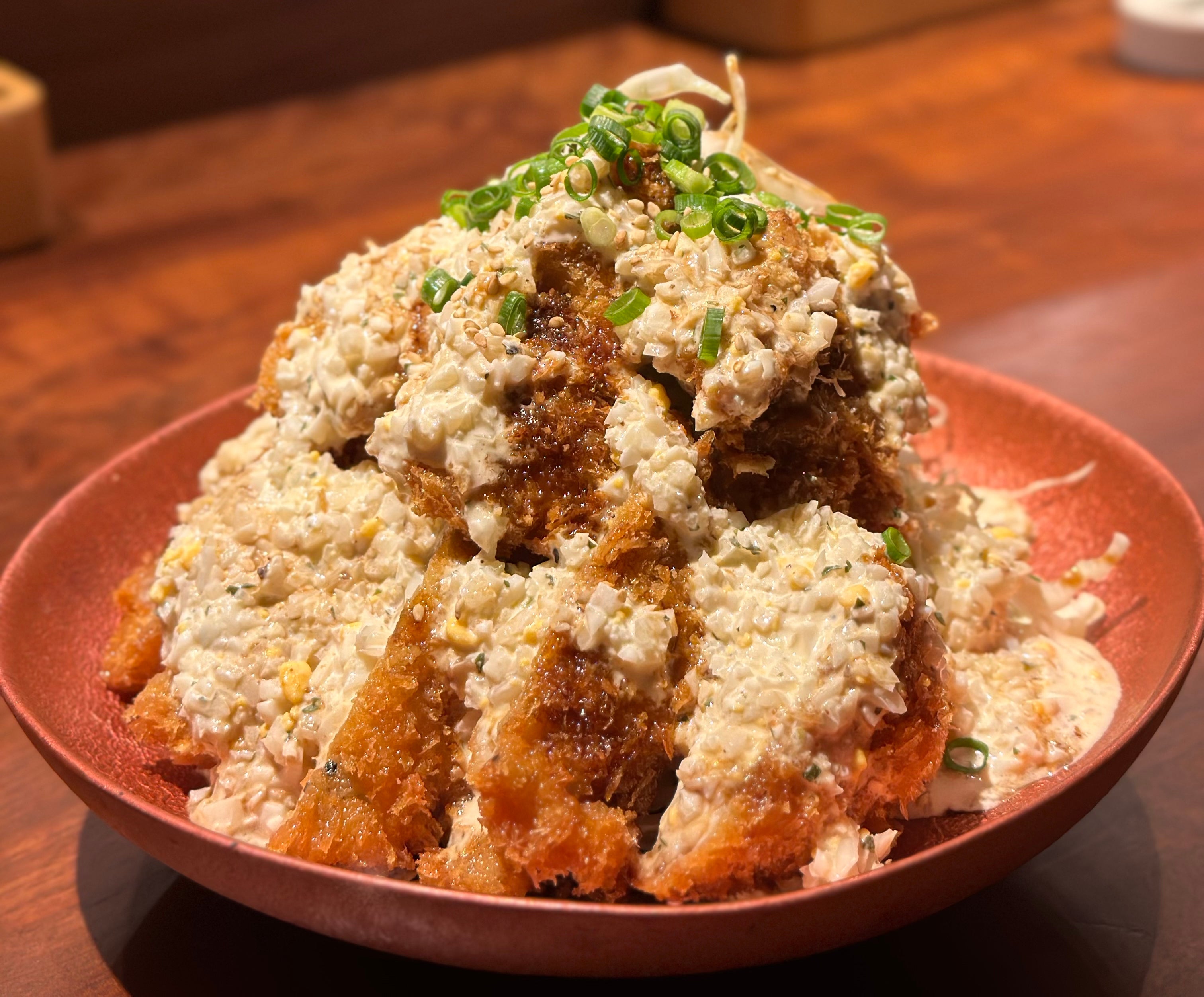 大ぶりの鶏カツにたっぷりの特製タルタルソースを掛けてご提供します。サラッと軽い口当たりのタルタルなので、最後まで美味しくお召し上がりいただけます。
