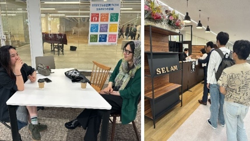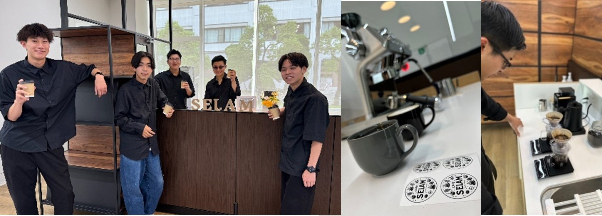 審査の結果、採用されたのはフェアトレードやSDGsをメインテーマとした「CAFÉ SELAM(セーラム)」。その場で淹れるコーヒーやラテで一息つこうと、多くの学生・教職員が訪れ、オープンから5日間で100杯以上を販売しました。今後は、クッキーやチョコレートの提供も考えており、フェアトレードの認知向上やSDGsの達成に向けた活動も展開していく予定です。また、売上管理の効率化を図るため、完全キャッシュレス決済を導入しています。