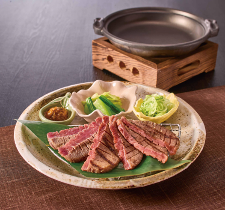 使用する牛たんは、厳選した厚切りのものを使用。ビタミンやミネラル、たんぱく質や脂質などの栄養素を豊富に含んでおり、疲労回復・老化防止・美肌効果などの健康効果があると言われています。更にアツアツの陶板で焼きながら、滋味あふれる大和芋と風味豊かなダシで合わせた体に優しいとろろ汁をかけて食べる国産もち麦めしを一緒に食べると、心も体も満たされるます。