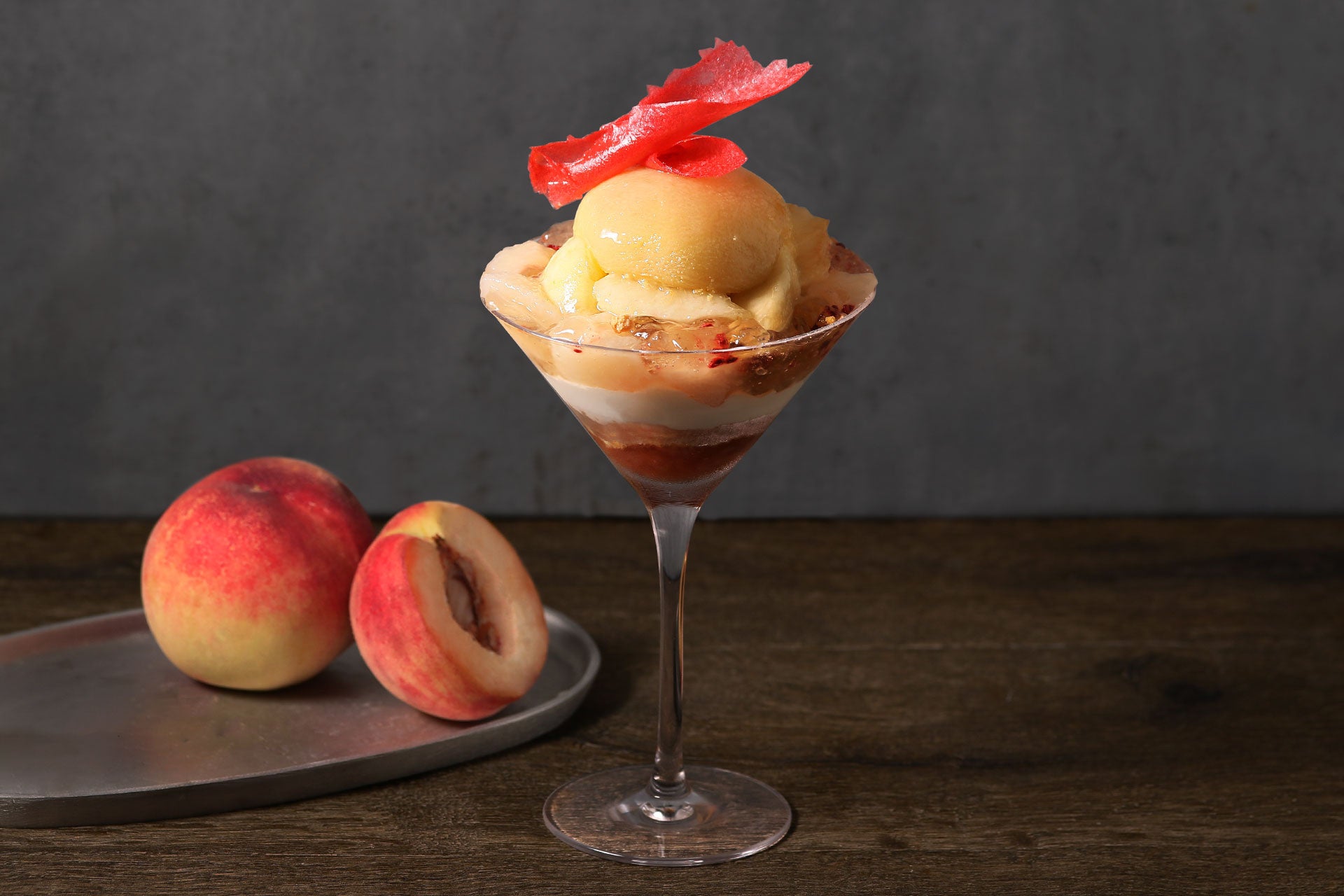 これからの時期に旬を迎える白桃を存分に堪能できるパフェ。
