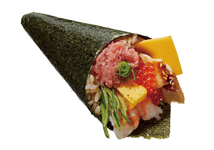 その他にも、みさきの新名物として、みさきのこだわりのネタをこれでもかと巻き上げた「良平手巻」も登場します。えび、あなご、玉子、いくら、ねぎまぐろ、チーズなど食べる場所で味わいが変わる新名物です。