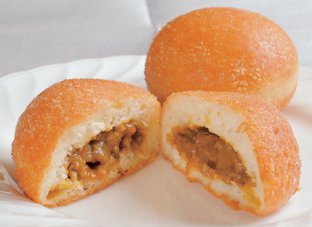 もちもちのドーナツ生地も存在感と、特製カレーの、最初は甘く後からくる辛さが特徴です。