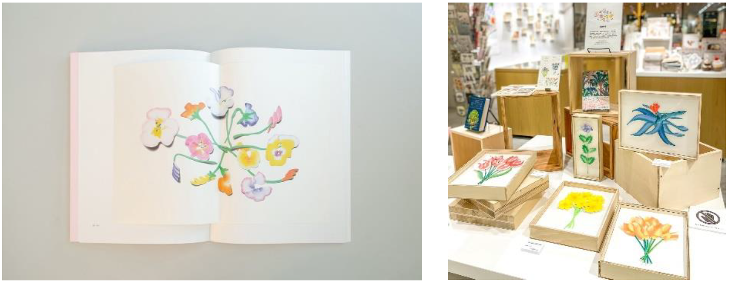紙に描いた筆跡を切り取り、再構成するドローイングの制作をするアーティスト/グラフィックデザイナー。期間中は、イラスト原画、グッズなどを販売します。