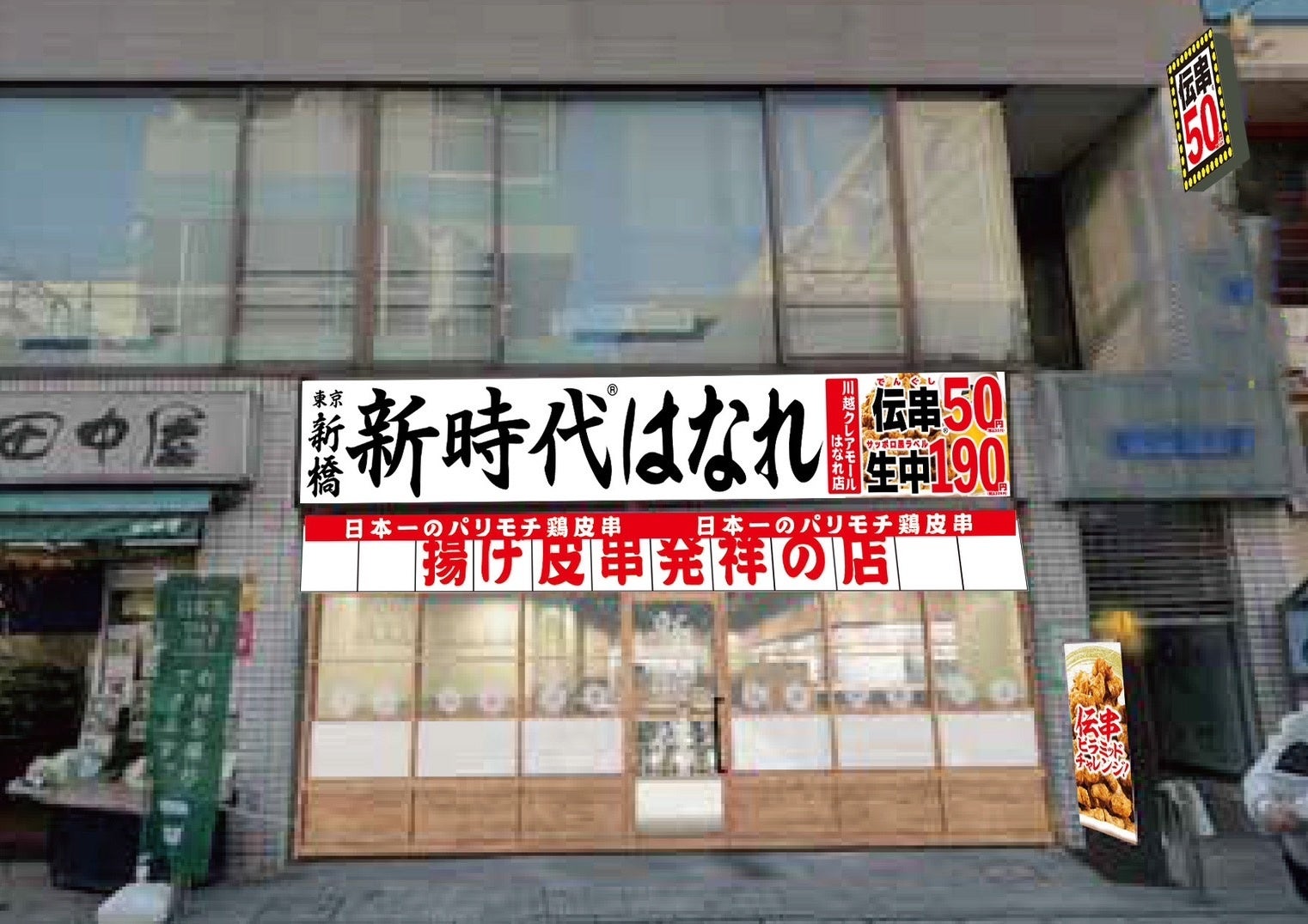 「新時代」は、累計販売本数2億本を超える『伝串』を名物とする、揚げ皮串発祥のお店です。