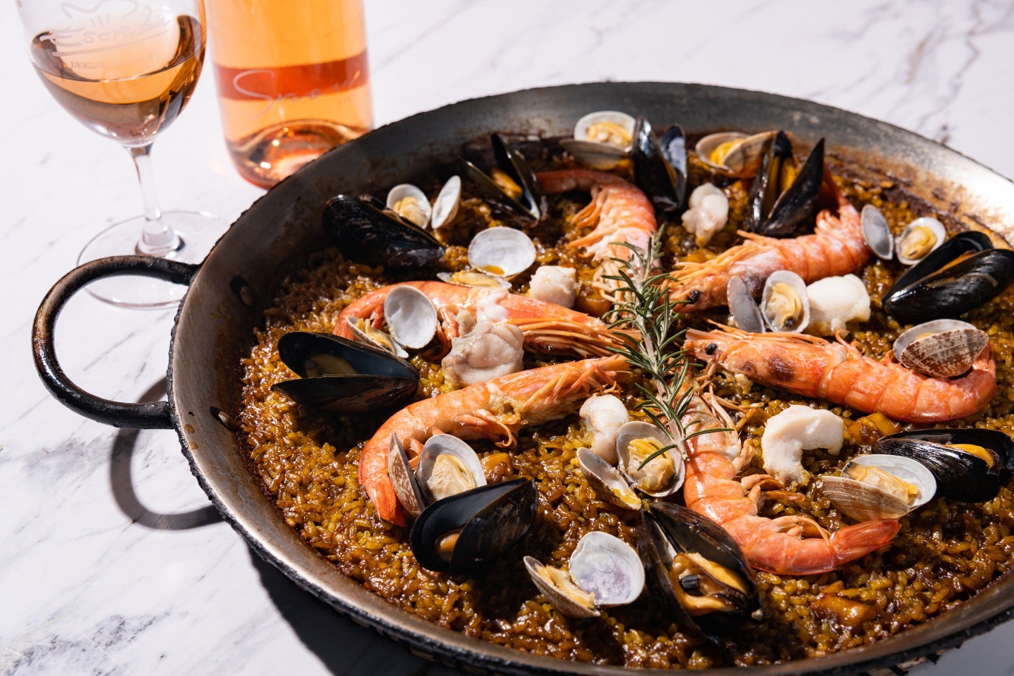 チリンギートエスクリバを代表するパエリア。エビ、ムール貝、アサリ、白身魚を使用、魚介の旨味が凝縮されたパエリアです。