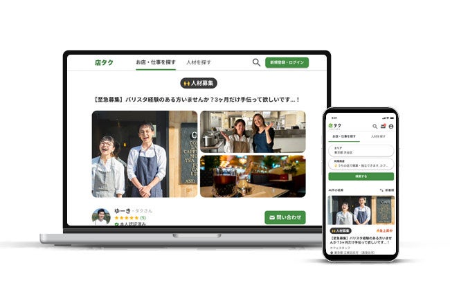 「お店を開きたい人」と「お店を利用していいよという人」を繋げる無料のコミュニティサイトとして、2020年12月にサービスを開始し、これまで約15,000人が利用してきた『店タク』ですが、利用者の利便性と安全性を重視した新機能を導入し、よりわかりやすい画面デザインに刷新いたします。