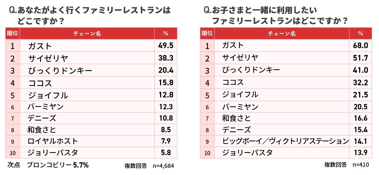 ■よく行くファミレス・子どもと利用したいファミレスは「ガスト」「サイゼリヤ」