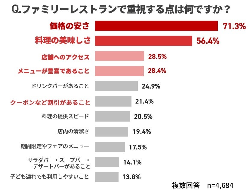 ■ファミレスで重視する点は「価格」と「美味しさ」