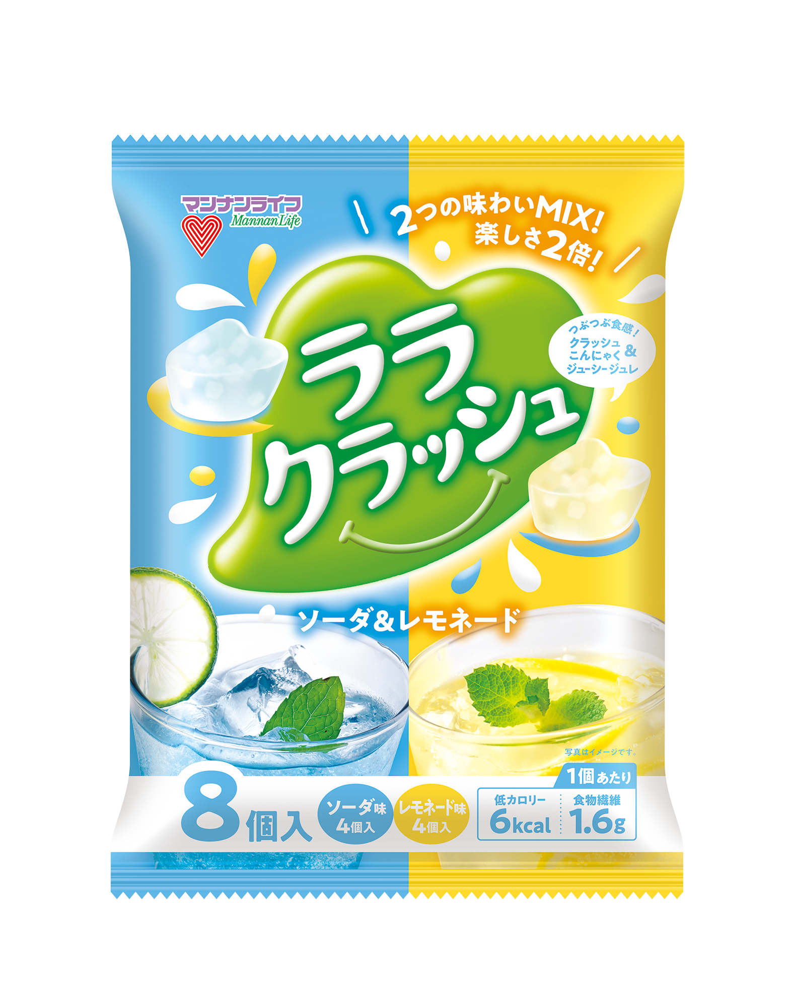 果物では味わえないこんにゃく独特の食感は、さらに美味しさを引き立てます。