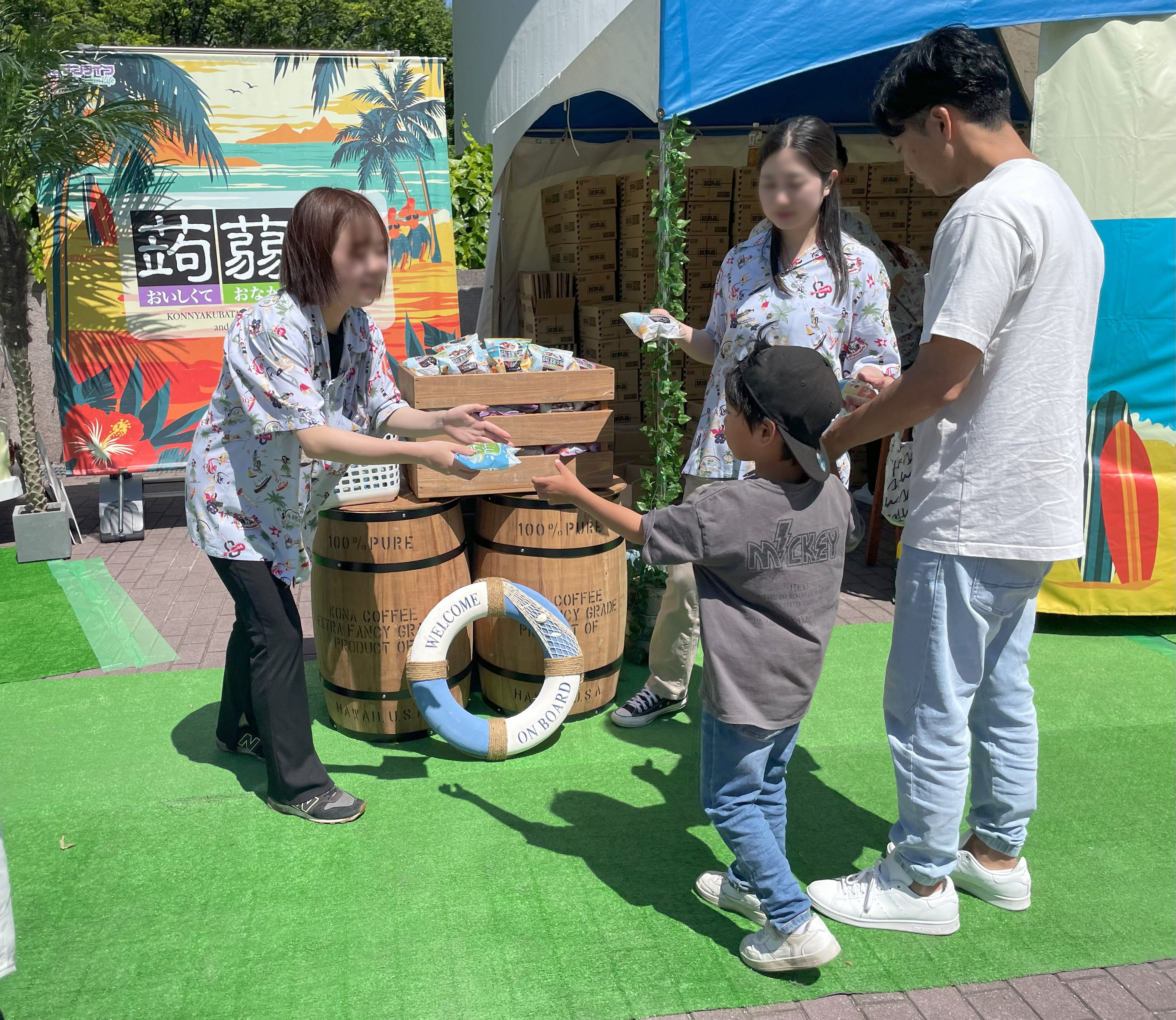 「蒟蒻畑」の特長である、もっちりとした独特の食感をご体感いただくために、サンプリングを行います。