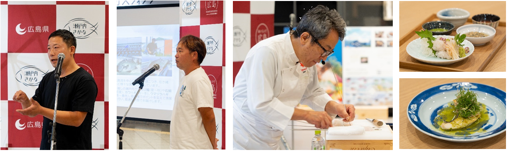 ご登壇いただいたこだわり漁師のハモ・スズキを使った調理デモンストレーションとして、「広島旨い物処 稲茶」の下原一晃料理長が、日本料理の創意工夫と技術で洗練された一皿に仕上げていただきました。