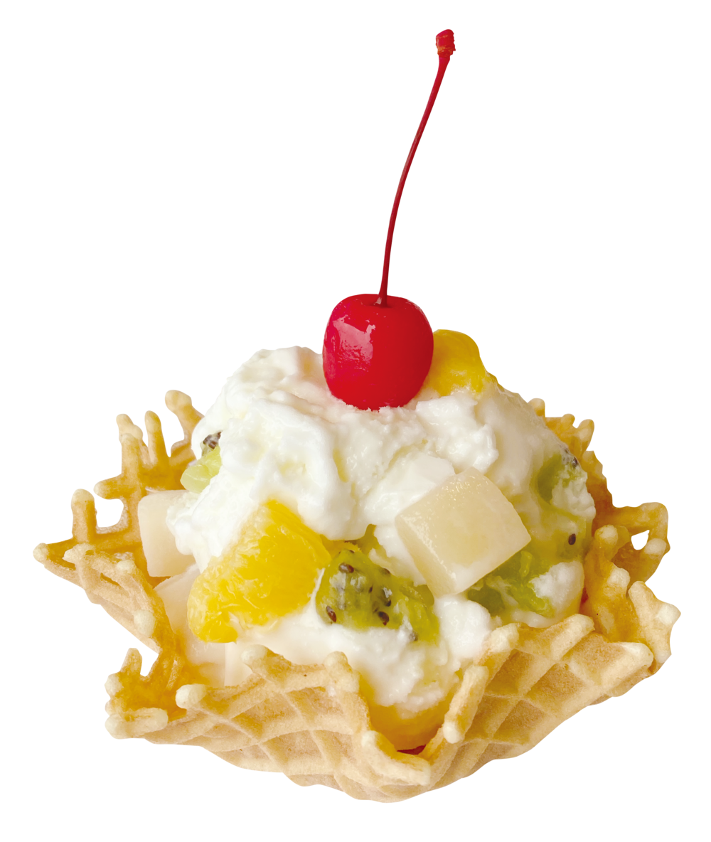 オレンジ、キウイ、白桃、さくらんぼを使用した、カラフルで見た目も楽しい杏仁ジェラート。最後まで様々な味わいをお楽しみ頂けます!