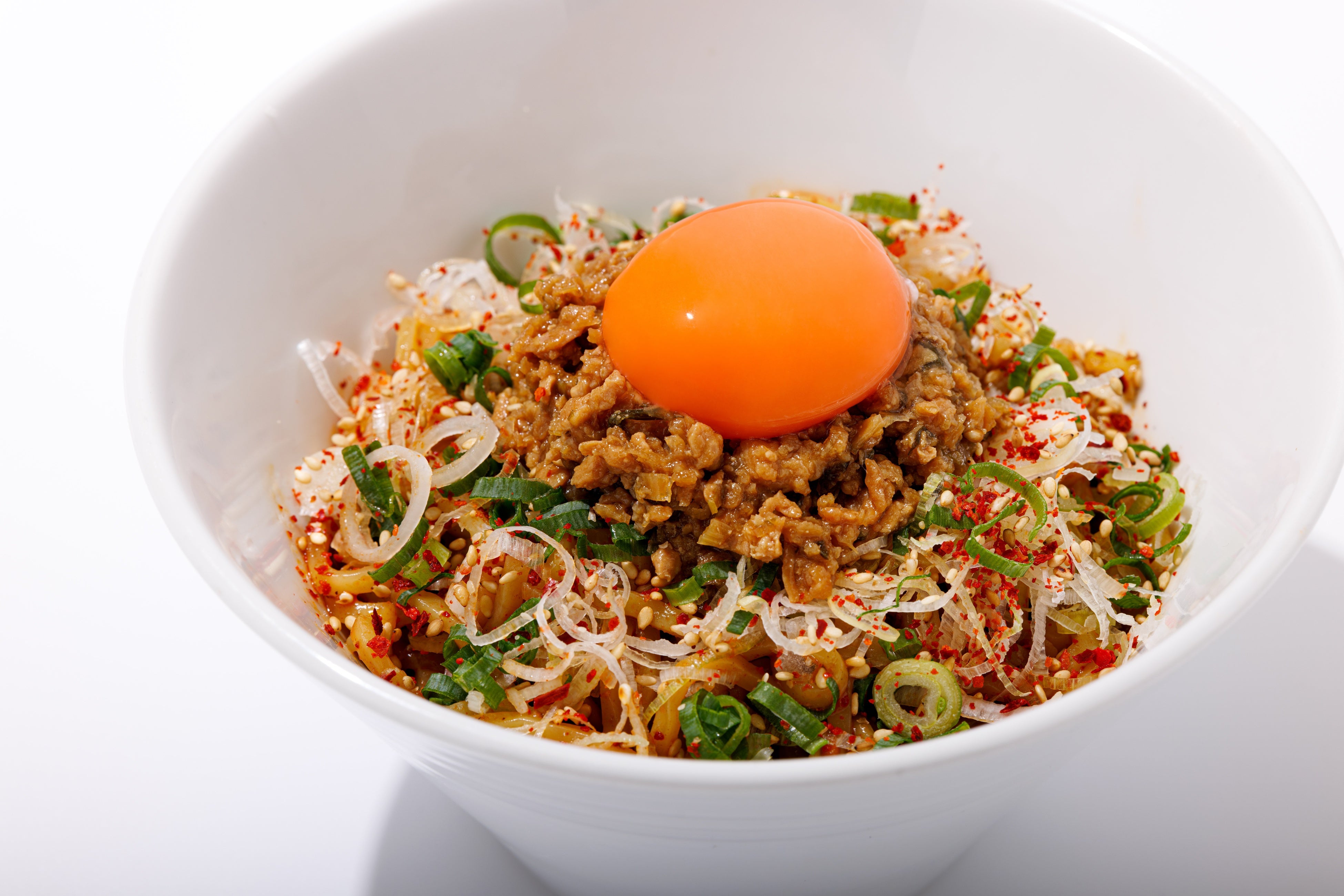もっちり太麺が、特製の坦々ダレと絡み合い、口の中に広がる辛さと旨さを絶妙に融合させた逸品です。すみれ自慢の大山どりのそぼろと濃厚な坦々ダレが絡み合い、ピリッとした辛味と後を引く旨味が楽しめます。さらに、トッピングされた濃厚な卵黄が全体をまろやかに包み込み、一口食べるごとに感じるクリーミーな風味が後を引きます。新鮮なネギとゴマがアクセントとなり、爽やかな食感と香ばしさをプラス。暑い夏の日にもぴったりの、爽快な味わいが楽しめる一品です。