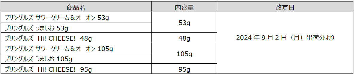日本ケロッグ合同会社(本社:東京都千代田区、代表職務執行者社長:井上ゆかり)は、2024年9月2日(月)出荷開始商品より順次、プリングルズ商品の改定を実施するためお知らせいたします。