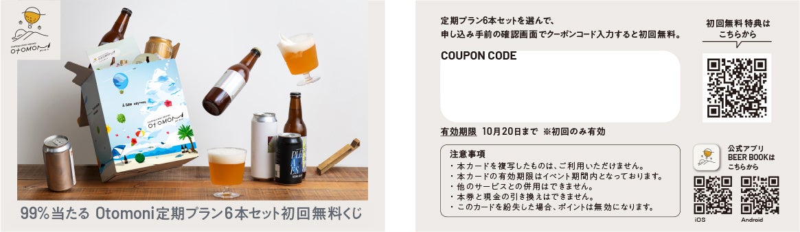 見事8本を飲まれた方は、「99%当たるOtomoniサブスク初回無料くじ」を引いて、クラフトビール6本を手に入れましょう!