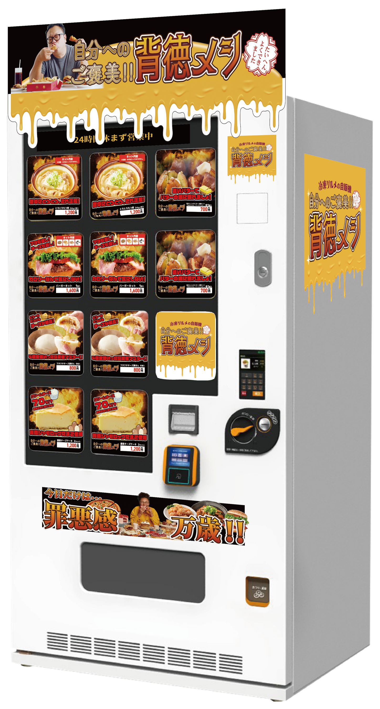 お客様の設置環境に合わせて、自販機にテーマを持たせ展開商品やPOPまでご提案をする株式会社Cqreeオリジナルの企画です。販売商品は自社運営の全国の有名店や絶品グルメを集めた冷凍卸・仕入販売サイトから注文可能です。