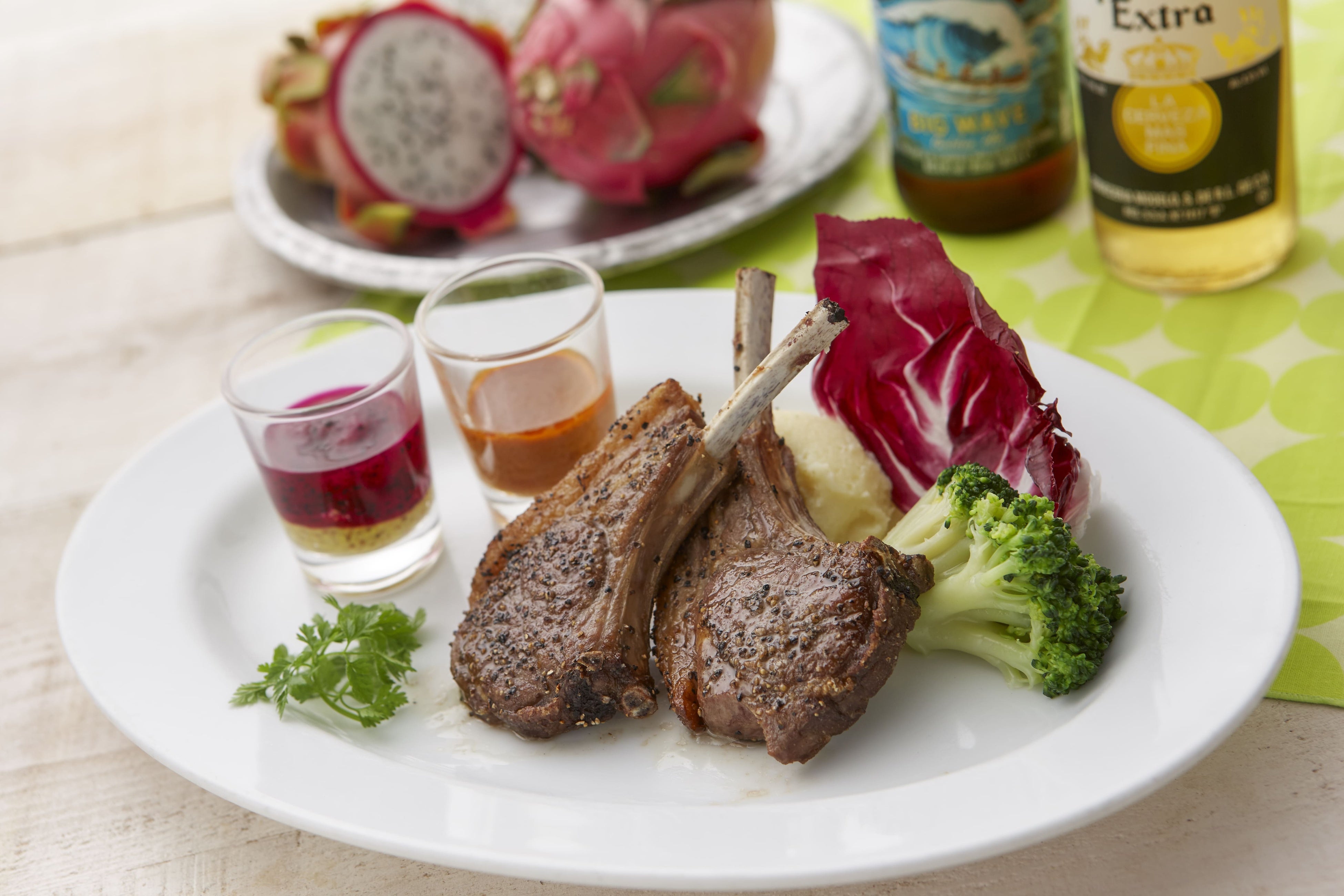 詳細:夏といえばBBQ!ジューシーな骨付きのラム肉を香ばしくグリルしました。2種のソースをたっぷりとつけて、豪快に手づかみでお召し上がりください。