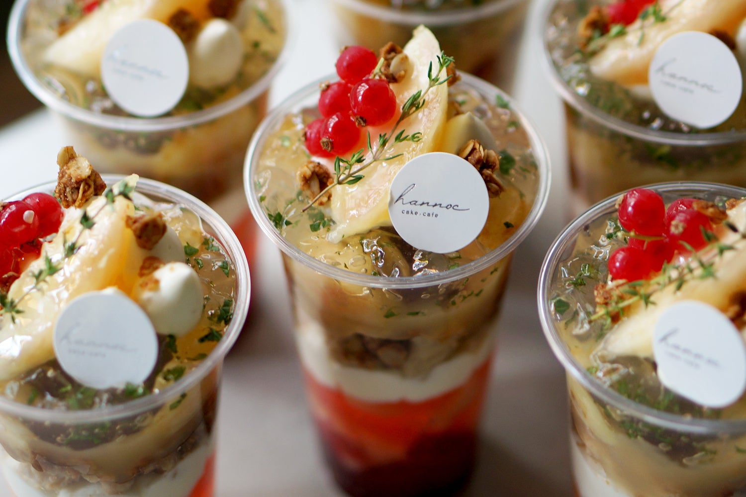 瑞々しいフレッシュの桃を中心に、8層のパーツから構成される本格的なパフェをテイクアウトカップでご用意いたしました。