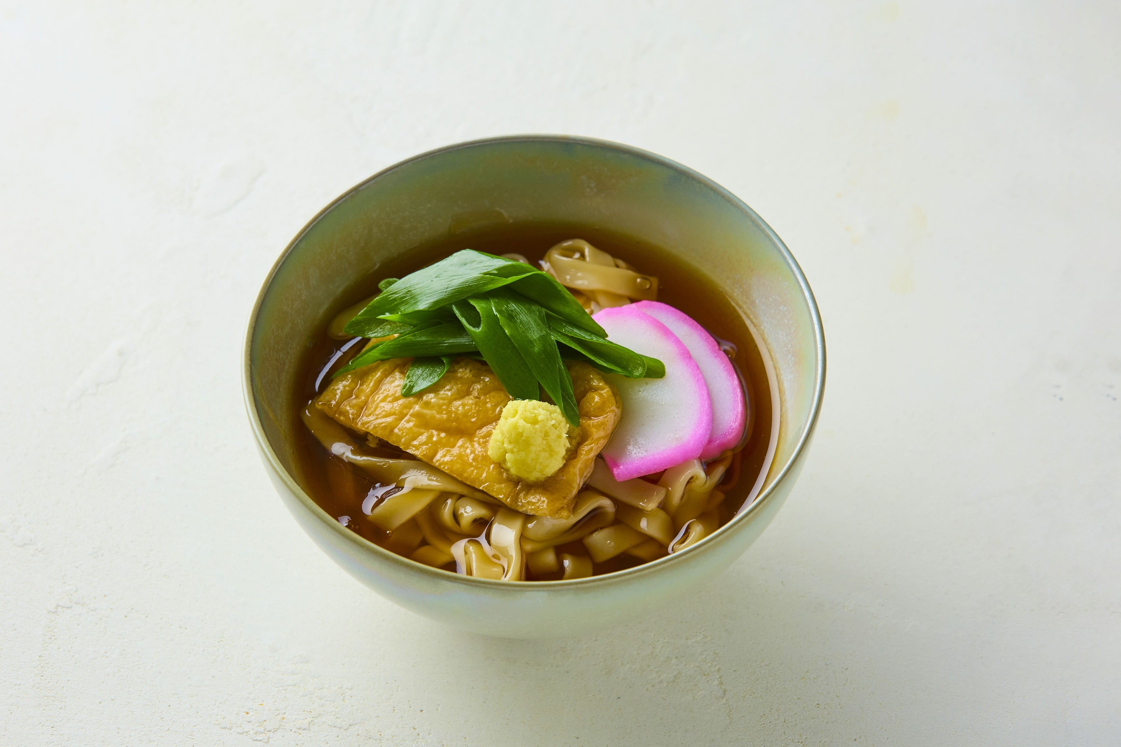 名古屋めしの代表格きしめんを徳川家康が「たぬき親父」と言われていたことから徳川園風にアレンジ。とろみを付けたつゆと甘辛く煮た油揚げを入れ、たぬきうどん風に仕上げました。