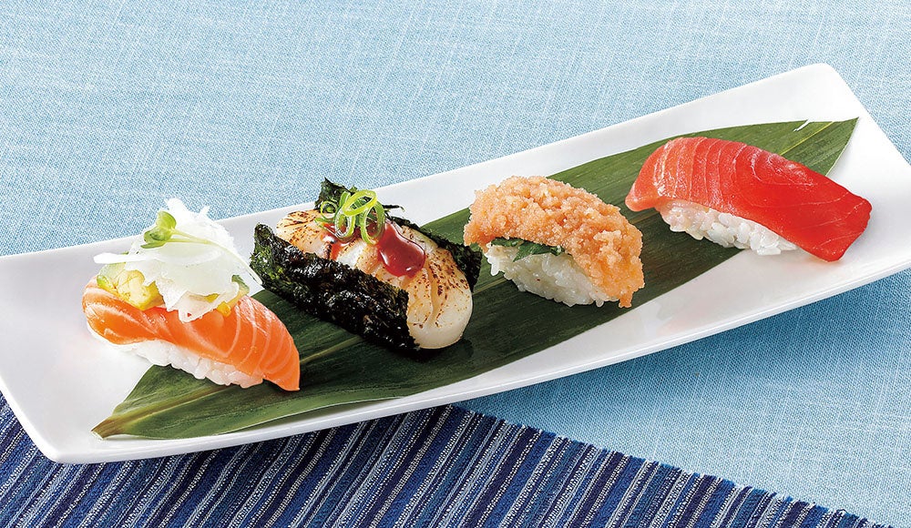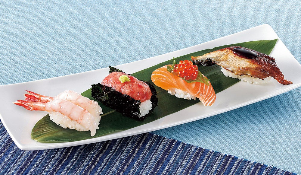同時開催する「夏の感謝祭」では、9月17日(火)まで、夏のおすすめや人気の定番ネタをバラエティ豊かに取り揃えた特別な4貫盛のお寿司メニューを3種販売いたします。