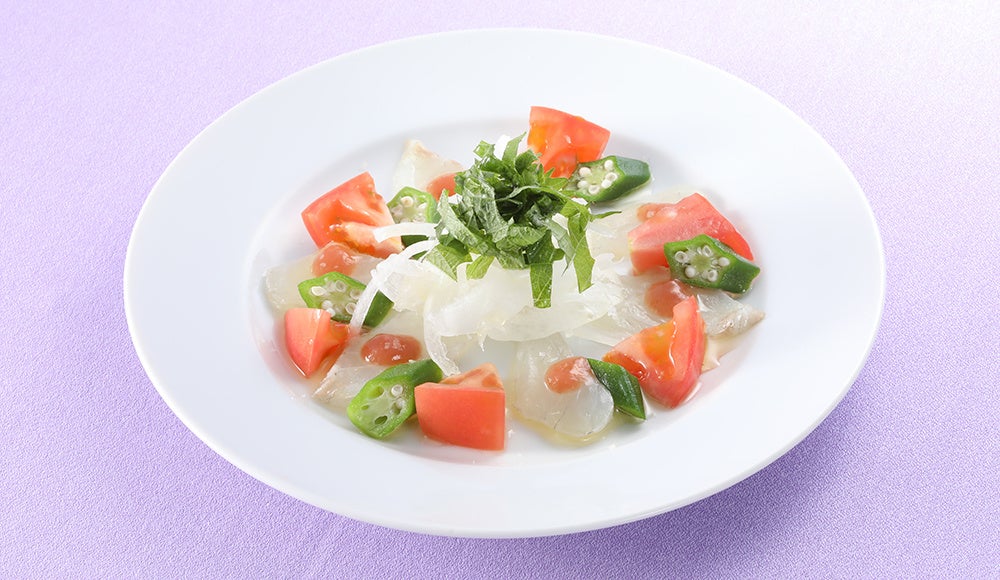 夏に旬をむかえる『すずき』と『はも』。『すずき』は、しその葉と梅肉をトッピングして爽やかにお召し上がりいただける『すずき 梅しそ』やサラダとしてお召し上がりいただける『すずきのカルパッチョ』がおすすめです。『はも』は、天ぷらをお寿司としても一品としてもお召し上がりいただけます。