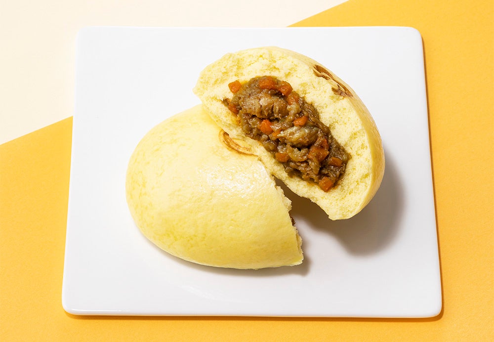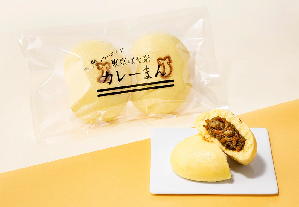 豚肉、玉ねぎ、にんじんを合わせた特製カレーの具は、ごろっとお肉を感じる贅沢な味わいにパワーアップ!隠し味に株式会社ドールの「もったいないバナナ(※)」を使用したバナナピューレとバターを溶かし込み、一層とろっとまろやかになりました。東京ばな奈のようにみんなに愛される味わいに仕上げています。ほんのり甘いもっちりふわふわの生地は可愛い東京ばな奈型。真ん中に押した焼き印は美味しさの証です。熱々のカレーまんは、オリジナル包み紙でお渡しします。