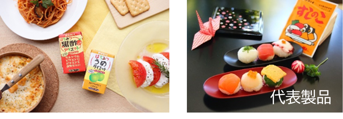 醸造酢、粉末酢、各種調味料、レトルト食品および菓子・健康飲料などの製造・販売