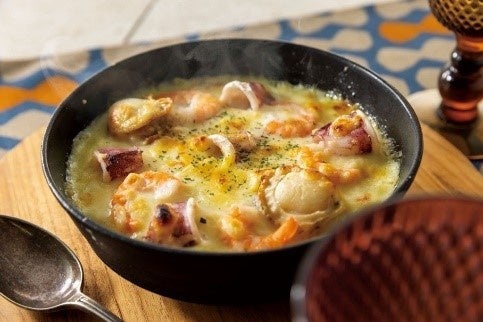 特製クリームソースとホワイトソースを使用。イカや海老の海の幸を堪能できる人気メニューです。