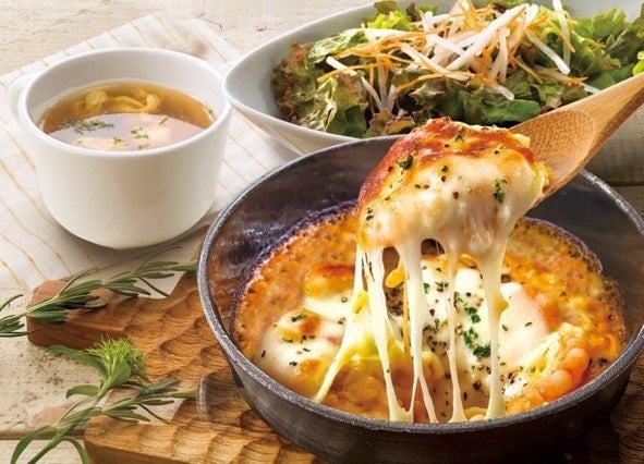 同店のオープンを記念して、横濱元町ドリアの人気メニュー「海老とモッツァレラのイセエビ風味クリームドリア」(=写真下)とスープ、サラダのセットを1,500円(税込1,650円)でご提供いたします。