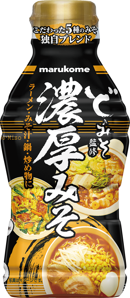 当社は液状タイプのみそ、液みそを2009年3月から業界に先駆けて発売してきました。だし入りやとん汁専用など充実したラインアップで、液みそカテゴリーは前期比107.2%を記録※1するなど拡大傾向にあります。生みそと併用される方の用途では炒め物や和え物、ドレッシングなど、みそ汁以外でのメニューに使われている※2ことから、液みそもめんつゆのような万能調味料としての進化をみせています。そして今回、東京の京橋に本店を構え、グルメサイトでも高評価で話題の人気味噌らーめん専門店「ど・みそ」監修の濃厚みそを液みそシリーズの新商品として発売します。「ど・みそ」同様、5種類の味噌を使用することで奥深い味わいになりました。鶏、豚、鰹、煮干だしと花椒(ホアジャオ)に麦芽エキスを合わせることで、「ど・みそ」も太鼓判を押す商品に仕上がりました。ラーメンや鍋はもちろん、野菜炒めや炒飯など、味つけはこれだけで手軽にがっつり飯が楽しめます。