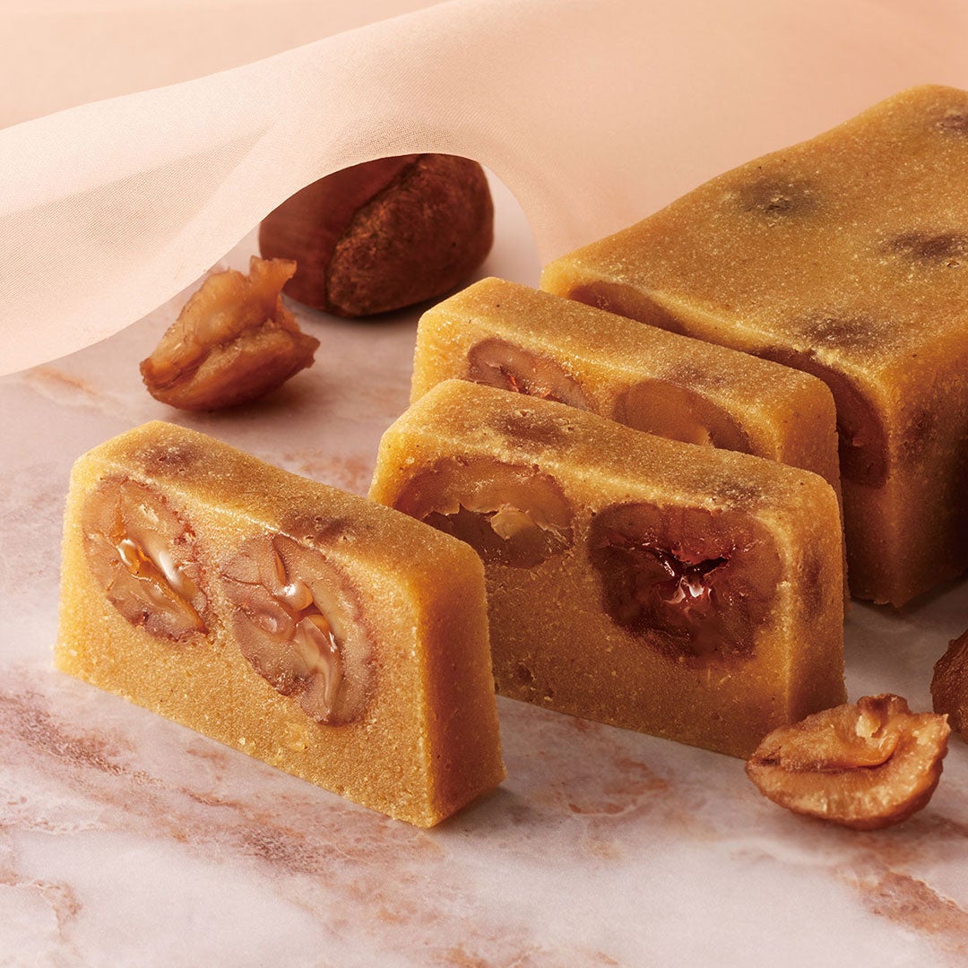 和栗のペーストや栗のチョコレートを加えた生地に、糖漬けしたイタリア産のマロンをたっぷり入れ、隠し味にラム酒をブレンドして蒸し焼きにしました。栗のやさしく奥深い味わいをお楽しみください。