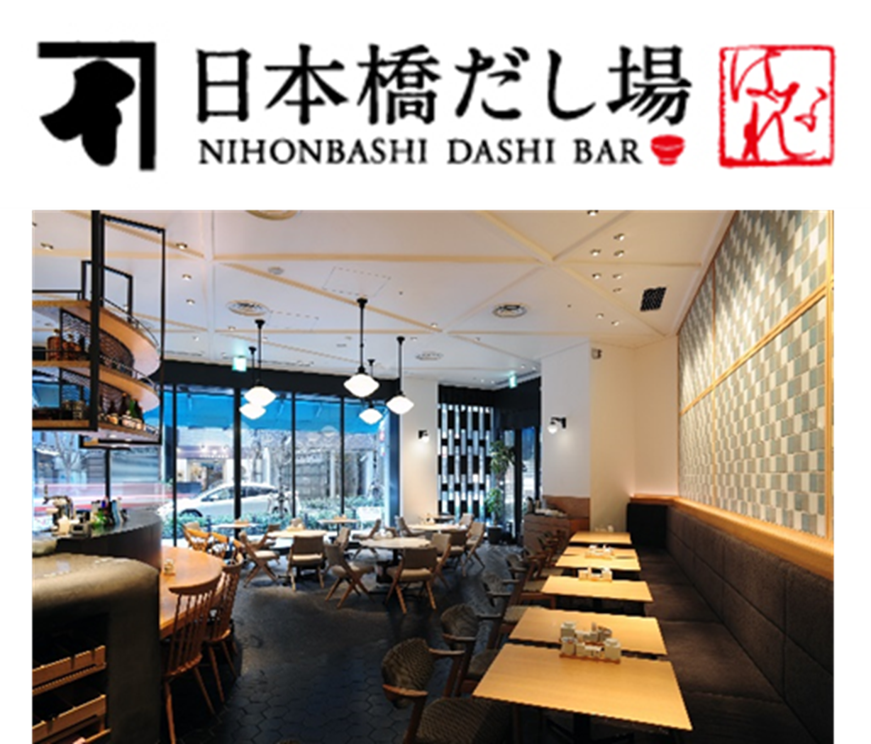 日本橋だし場 本店は、2010年のCOREDO室町1開業に際し、だしを知る・楽しむ・味わう場、だしコミュニティとしてオープンした鰹節専門店にんべん初の飲食業態です。